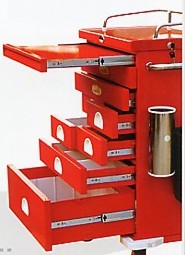 | YC-2 trolley mainly consists of groups of drawers used to store articles by sort. The middle platen can be used as a writing desk or putting things on. A piece of auxiliary folding table sized 510mm×360mm is fixed. Thus the